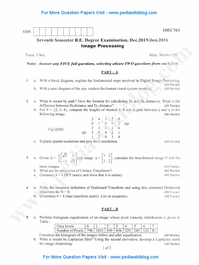Digital image processing model question paper 2015 scheme. Are you looking for EC2029 Digital Image Processing question papers important questions. Electronics and Communication Eng 7th Sem VTU Notes CBCS Scheme DownloadCBCS Scheme 7th Sem VTU Model And Previous Question Papers Pdf. Digital Image Processing PREVIOUS QUESTION PAPERS.