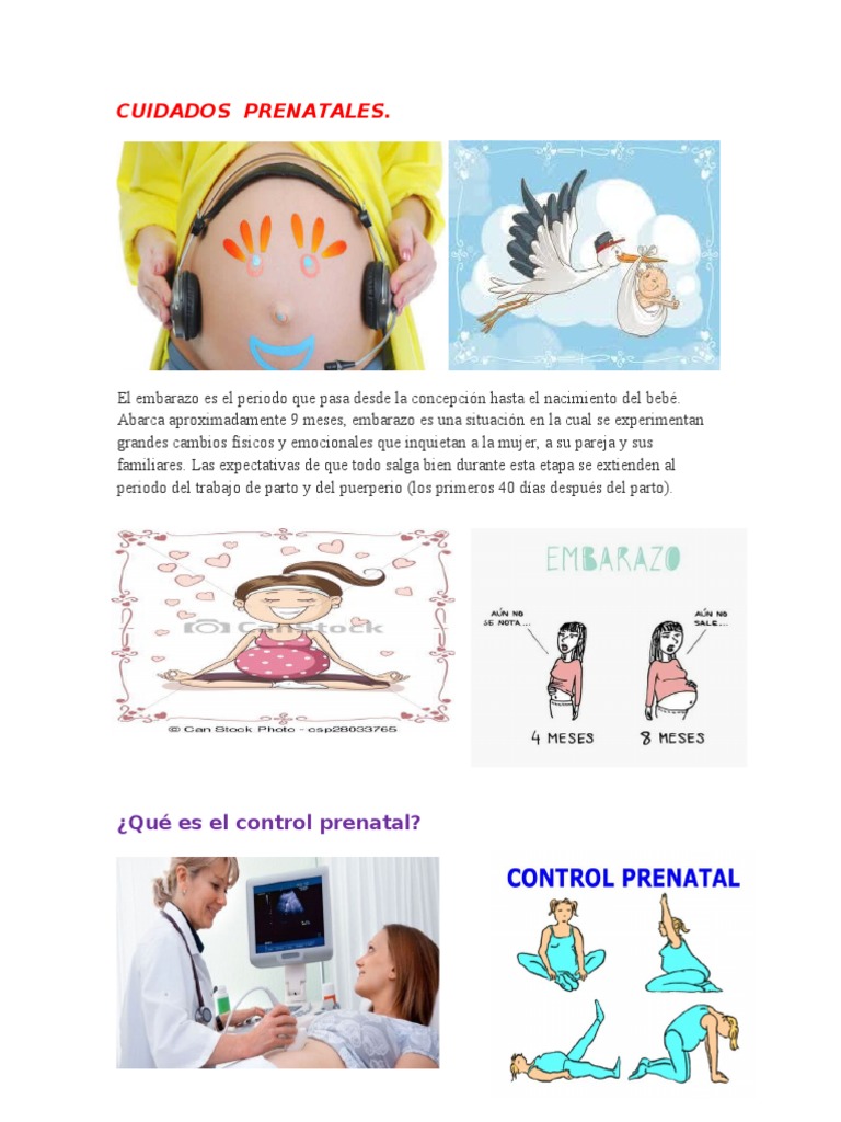 Una explicación de 20 líneas porfa. Los profesionales de enfermería deben utilizar el instrumento Prácticas de cuidado que realizan con-sigo mismas y con el hijo por nacer las mujeres en la etapa prenatal anexo 2. 1 Ver respuesta jelenpico24 está esperando tu ayuda. Qué son los cuidado prenatales. El ácido fólico es la vitamina más importante que debes tomar cuando planificas un embarazo. Estos chequeos de salud regulares también son oportunidades excelentes para que aprendas cómo aliviar cualquier molestia que tengas y para que hagas preguntas sobre el embarazo y. Con cuidados prenatales regulares las mujeres pueden obtener los siguientes beneficios. Los cuidados prenatales son los cuidados que recibe una mujer durante el embarazo. Permiten detectar afecciones que pueden poner al bebé en riesgo de problemas como un parto prematuro si no reciben tratamiento.