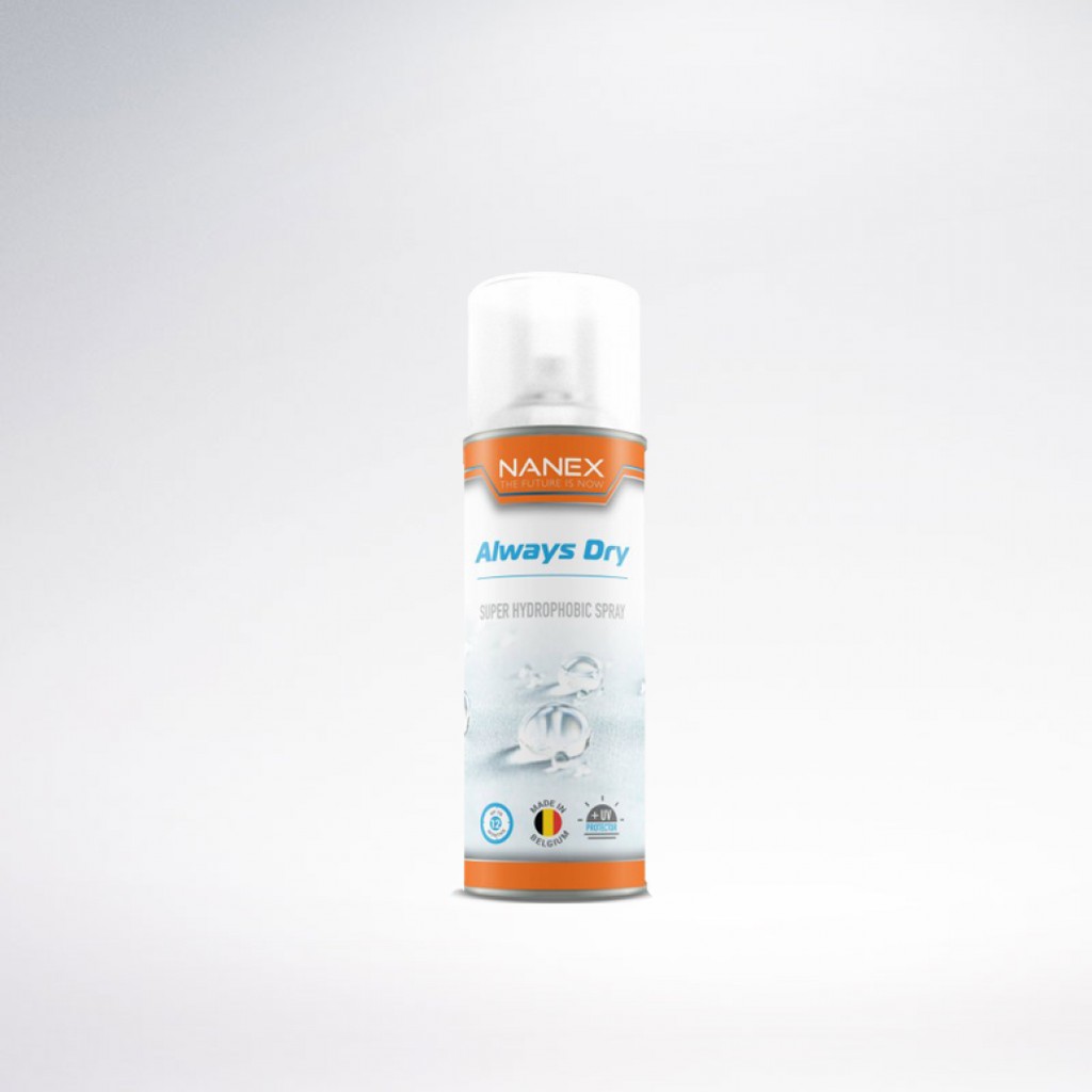 Always dry waterproof spray. I am always amazed how inexpensive it is and what a great repair they can do. Then you can apply a second coat to ensure your outdoor gear is weather resistant. Nanex Always Dry is as versatile in its application as it is in the materials it can be applied to.