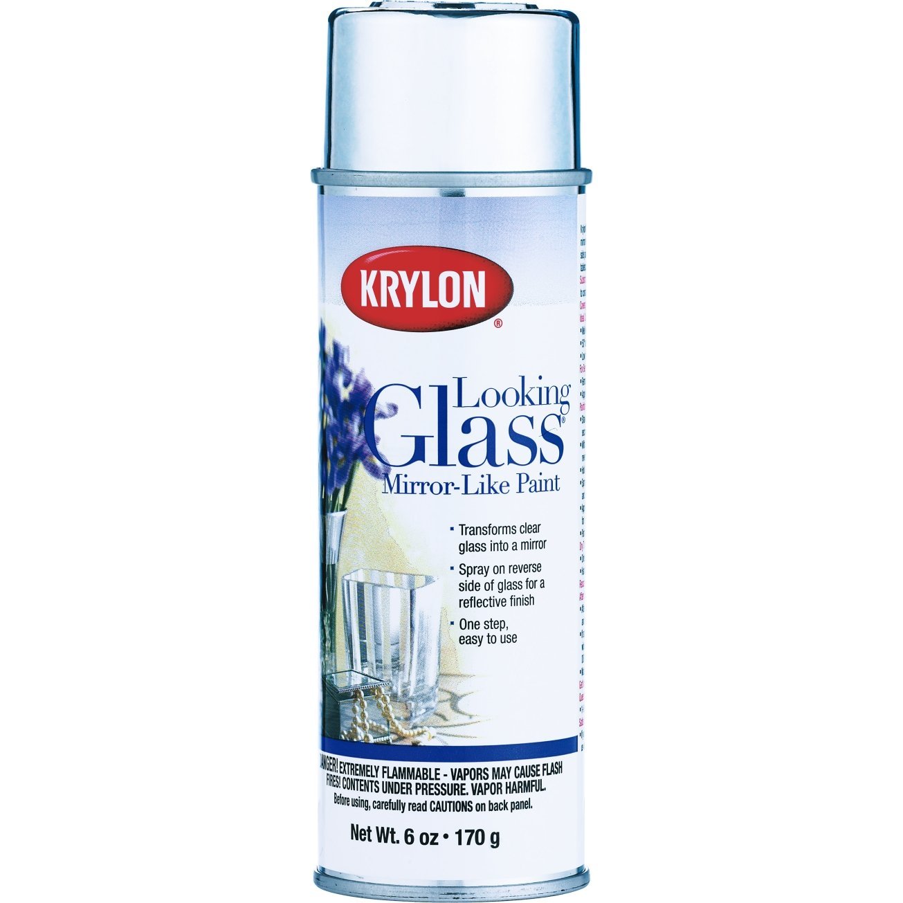 Krylon Looking Glass spray paint transforms clear glass into a highly-reflective mirror-like surface. Spray on the reverse side of clear glass for best reflectivity.