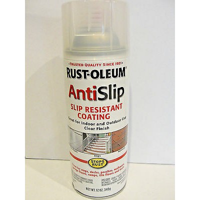Create a slip-resistant surface in minutes with Rust-OleumR EPOXYSHIELDR Anti-Slip Spray Coating. About EpoxyShield Anti-Slip Slip-Resistant Coating. If using these sprays on steel they should first be primed with a HARD HAT Anti-Rust Primer. Not for use in wet areas such as bathrooms or on substrates which are regularly in contact with water. Great for steps decks porches walkways garage floors ramps tile floors and more. The fast drying formula dries clear and can be applied to ramps stairs railings and more. Rust-Oleum Corporation 11 Hawthorn Parkway Vernon Hills IL 60061 USA.