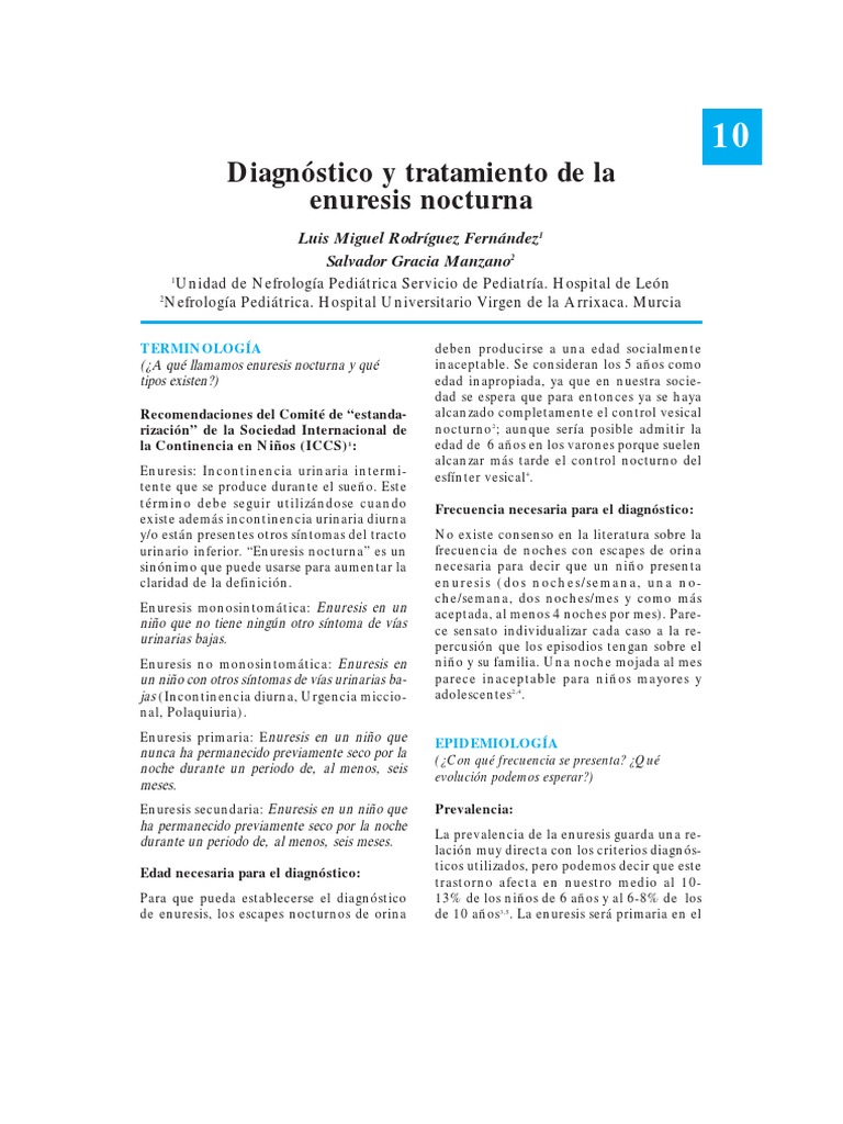 The prescription of the anticholinergic neurotrope and myotrope drug is interpreted as a part of the management of the wetting child and its environment. El tratamiento que se eligió para ambos problemas enu-resis diurna y nocturna fue la terapia conductual. Als Enuresis nocturna bezeichnet man das nächtliche Einnässen.